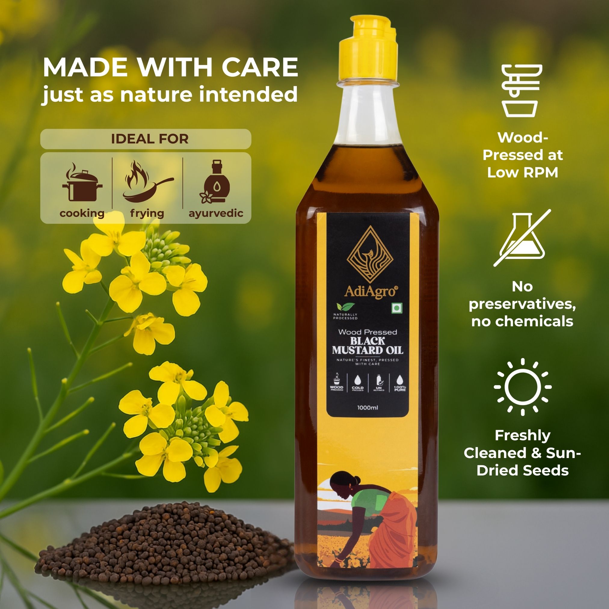 Home Cold/Wood Pressed Edible Oils Black Mustard Oil