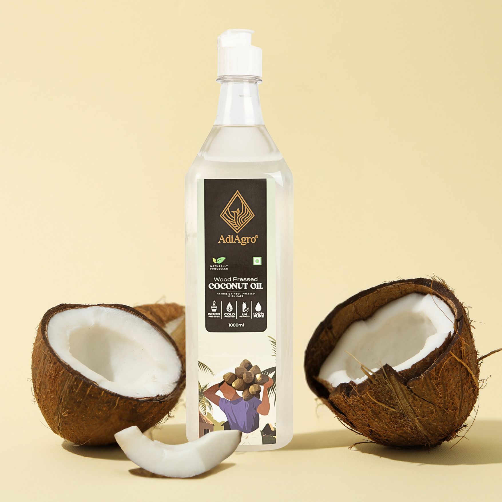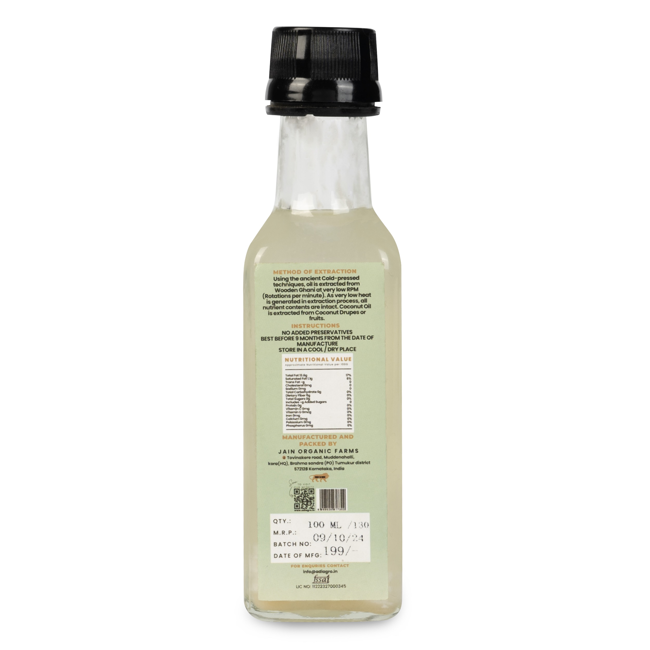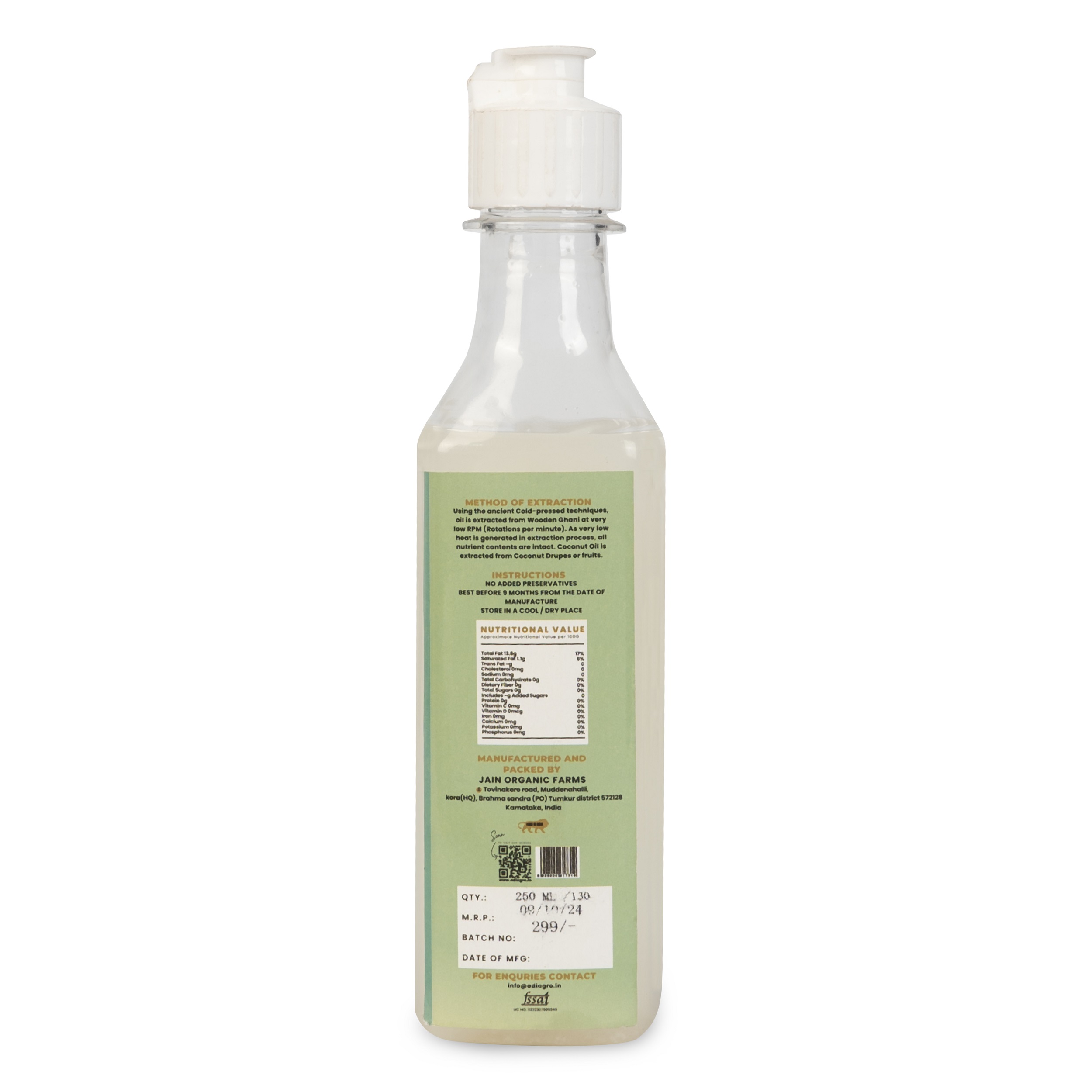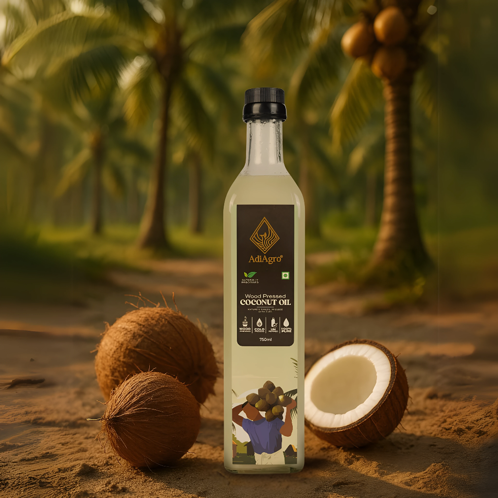 Using the ancient Cold-pressed techniques, oil is extracted from Wooden Ghani at very low RPM (Rotations per minute). As very low heat is generated in extraction process, all nutrient contents are intact and not burned away. Coconut Oil is extracted from Coconut Drupes or fruits.
