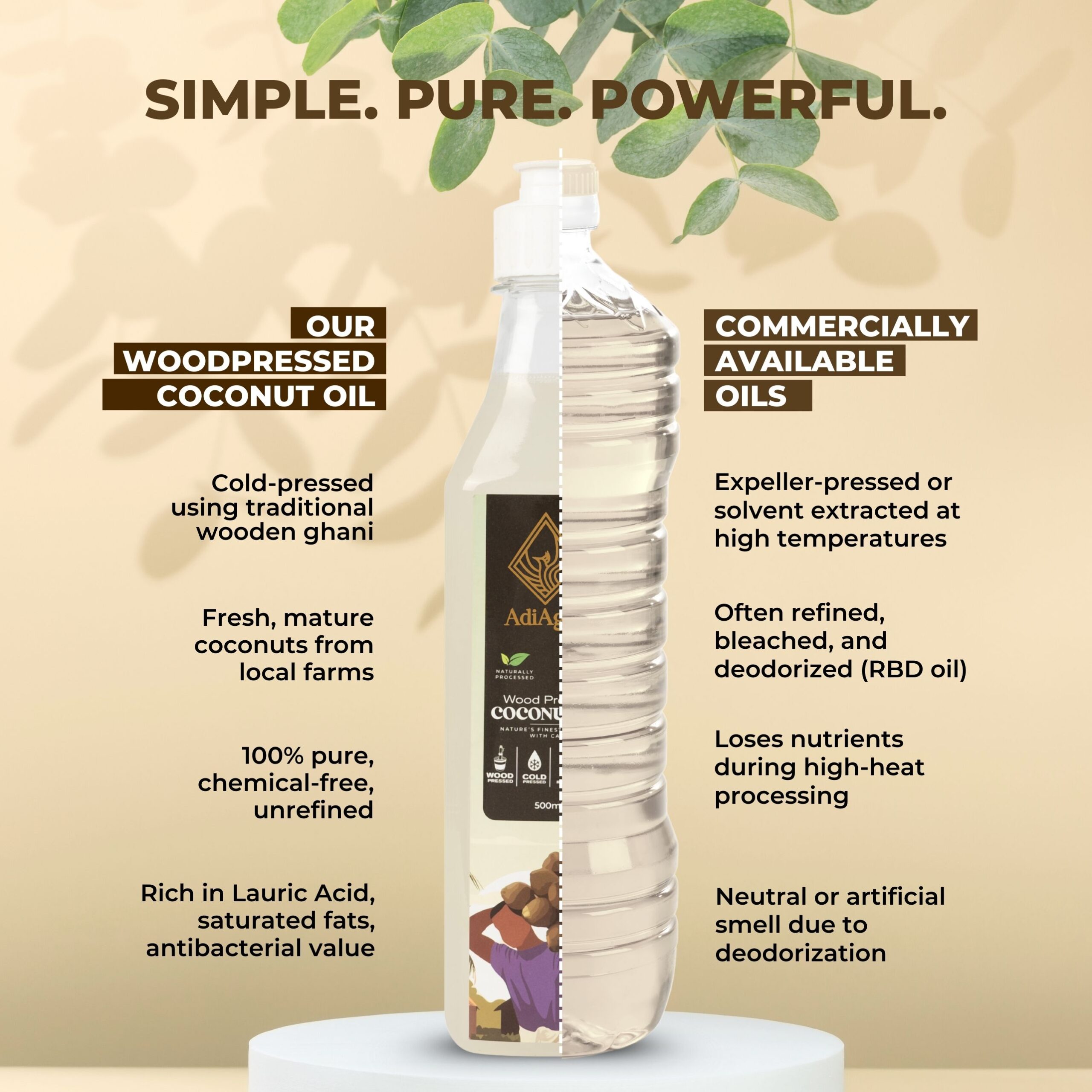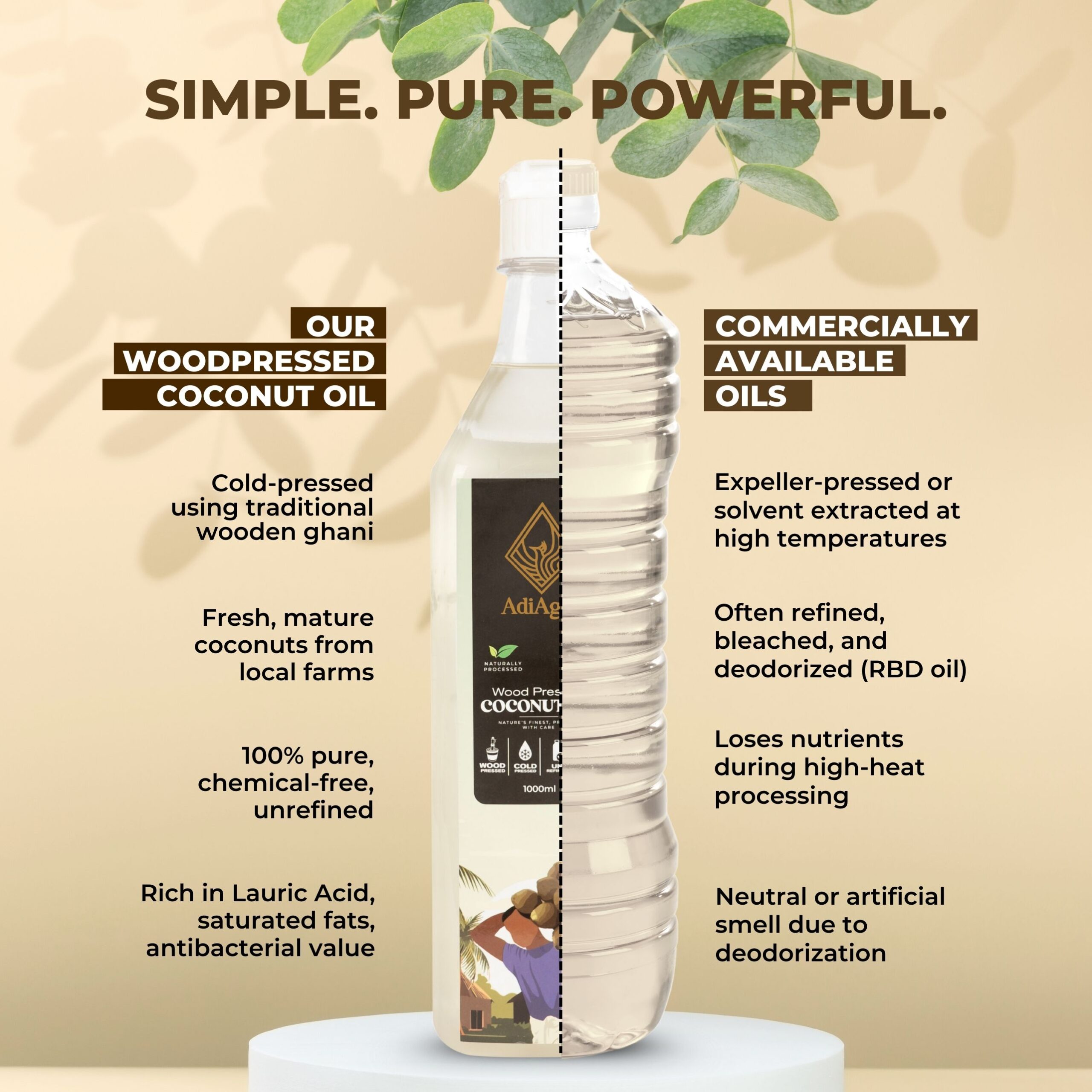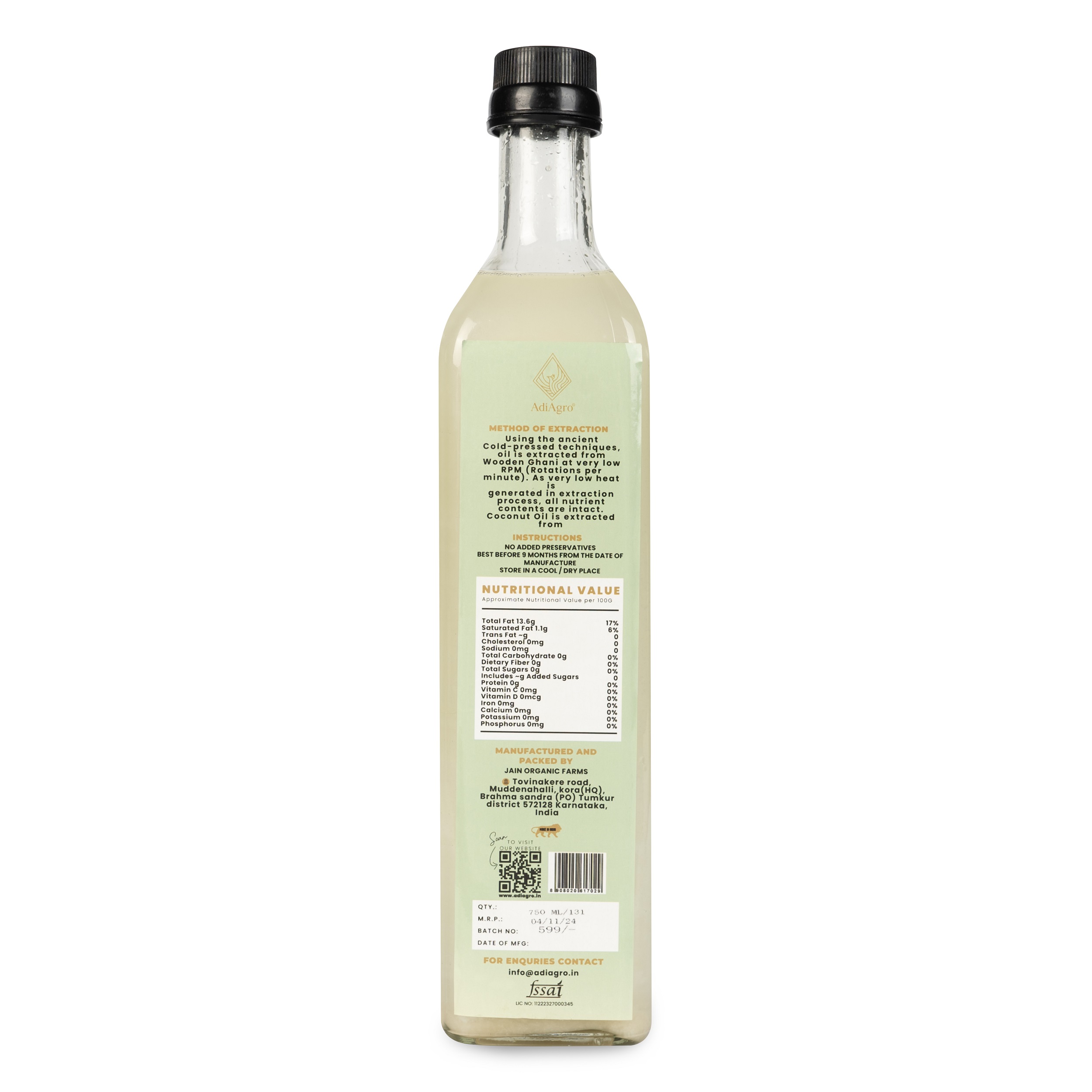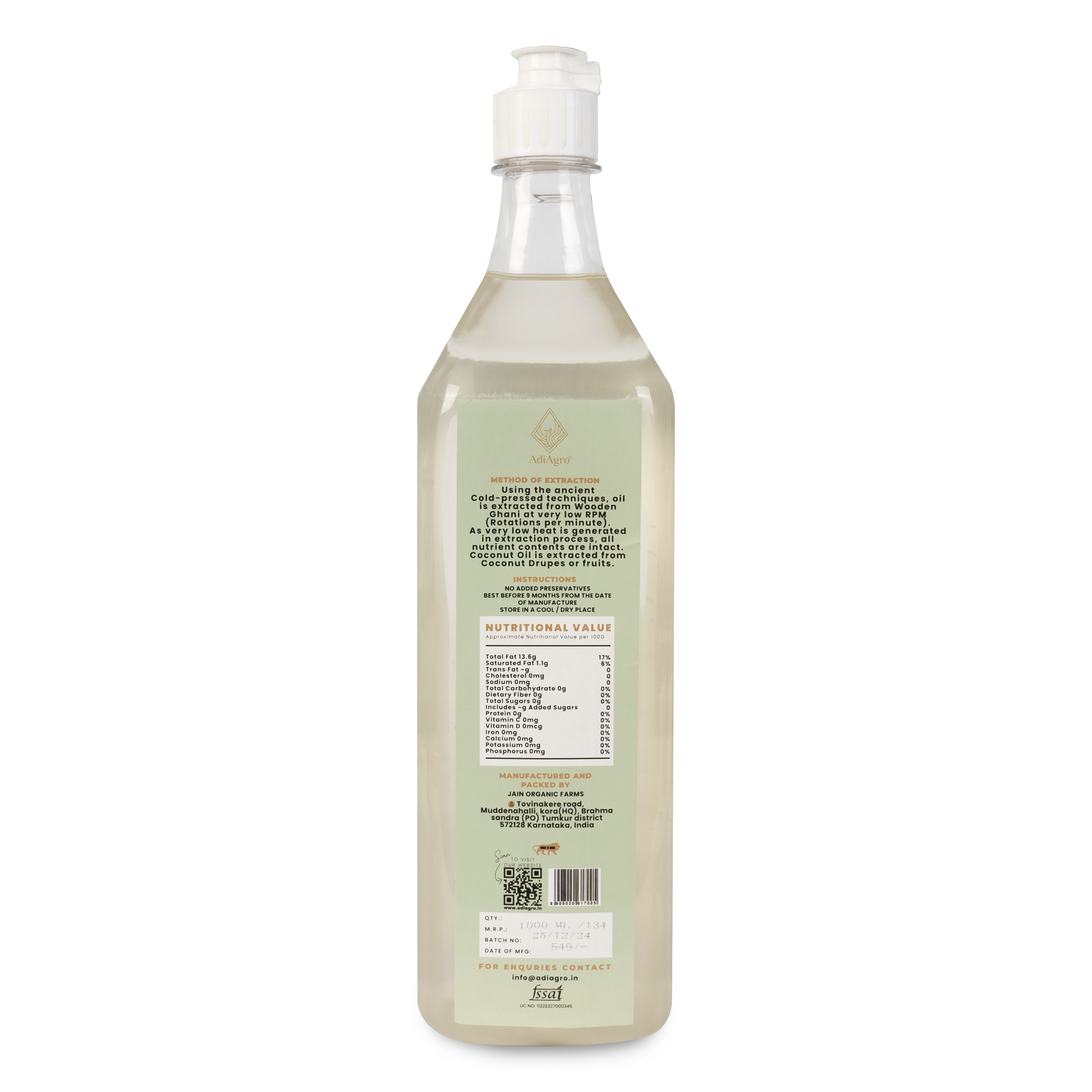 Using the ancient Cold-pressed techniques, oil is extracted from Wooden Ghani at very low RPM (Rotations per minute). As very low heat is generated in extraction process, all nutrient contents are intact and not burned away. Coconut Oil is extracted from Coconut Drupes or fruits.