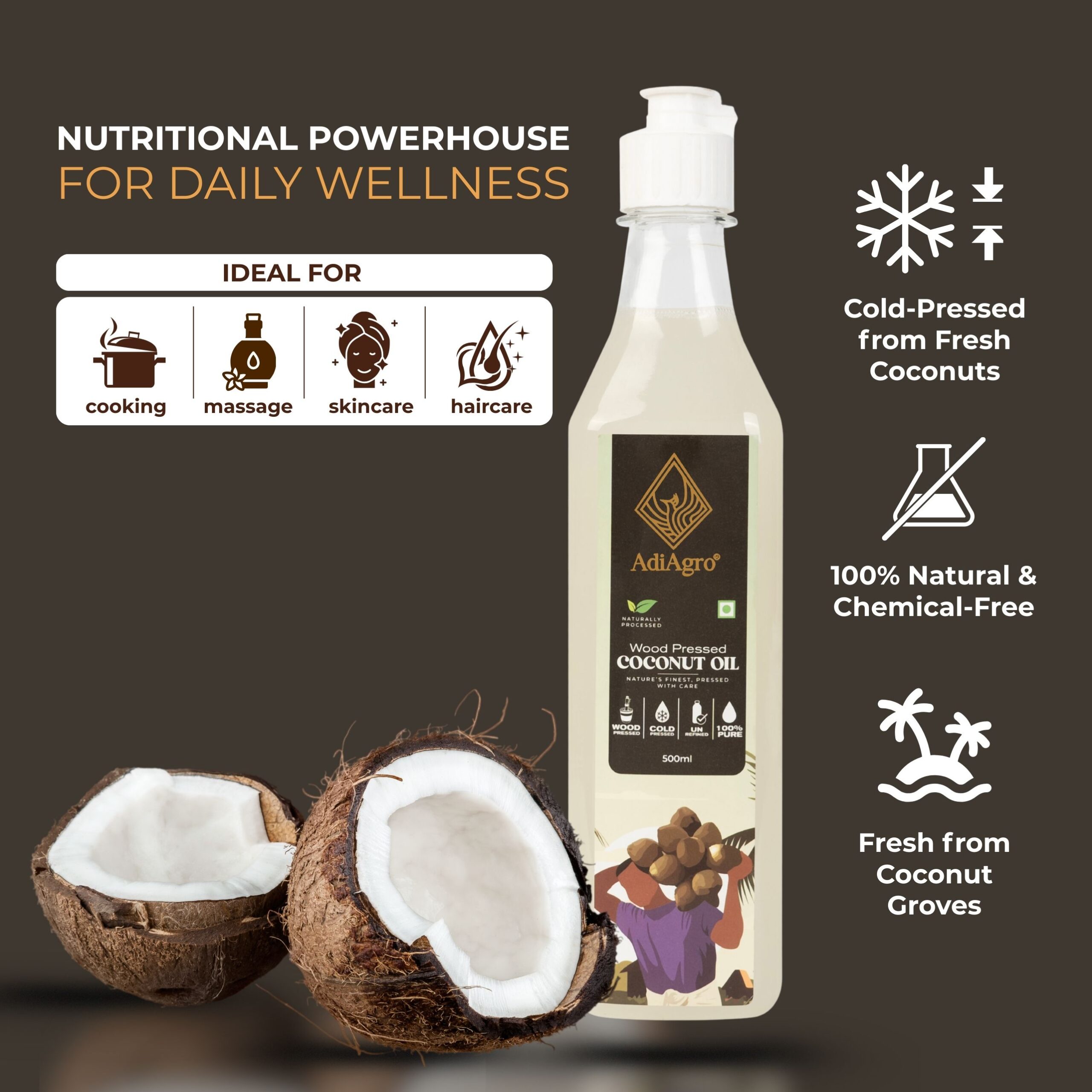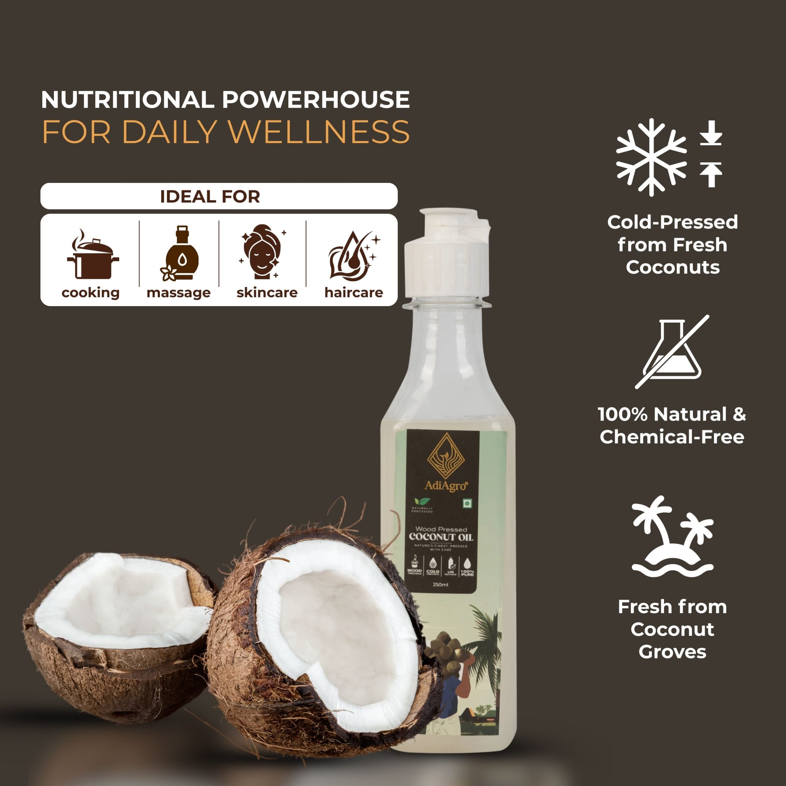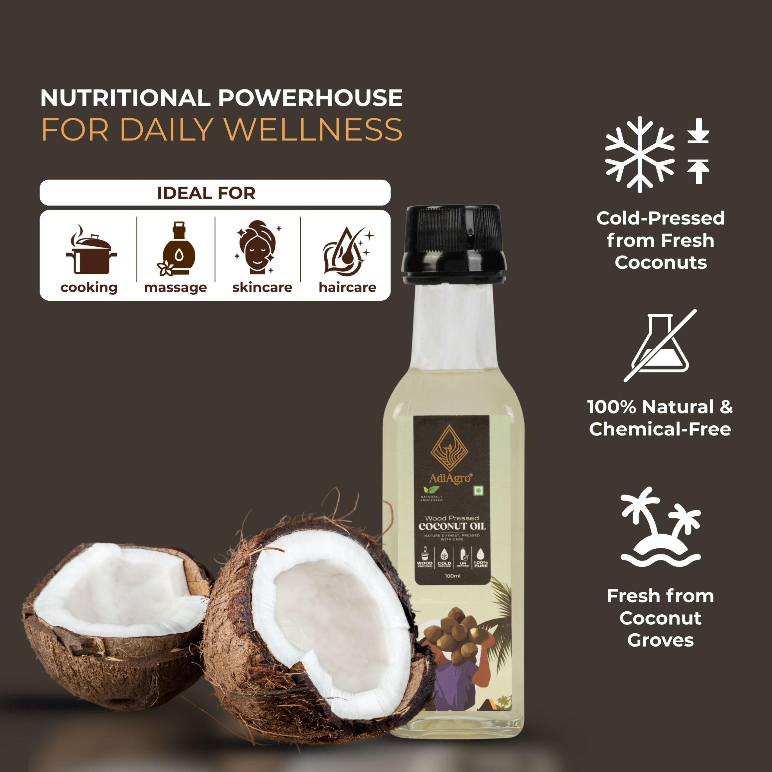 - Coconut Oil is known to have the most number of uses amongst any naturally extracted oil. Coconut Oil is used as skin moisturizers, cooking oil, haircare, skincare, and also used in medicine.