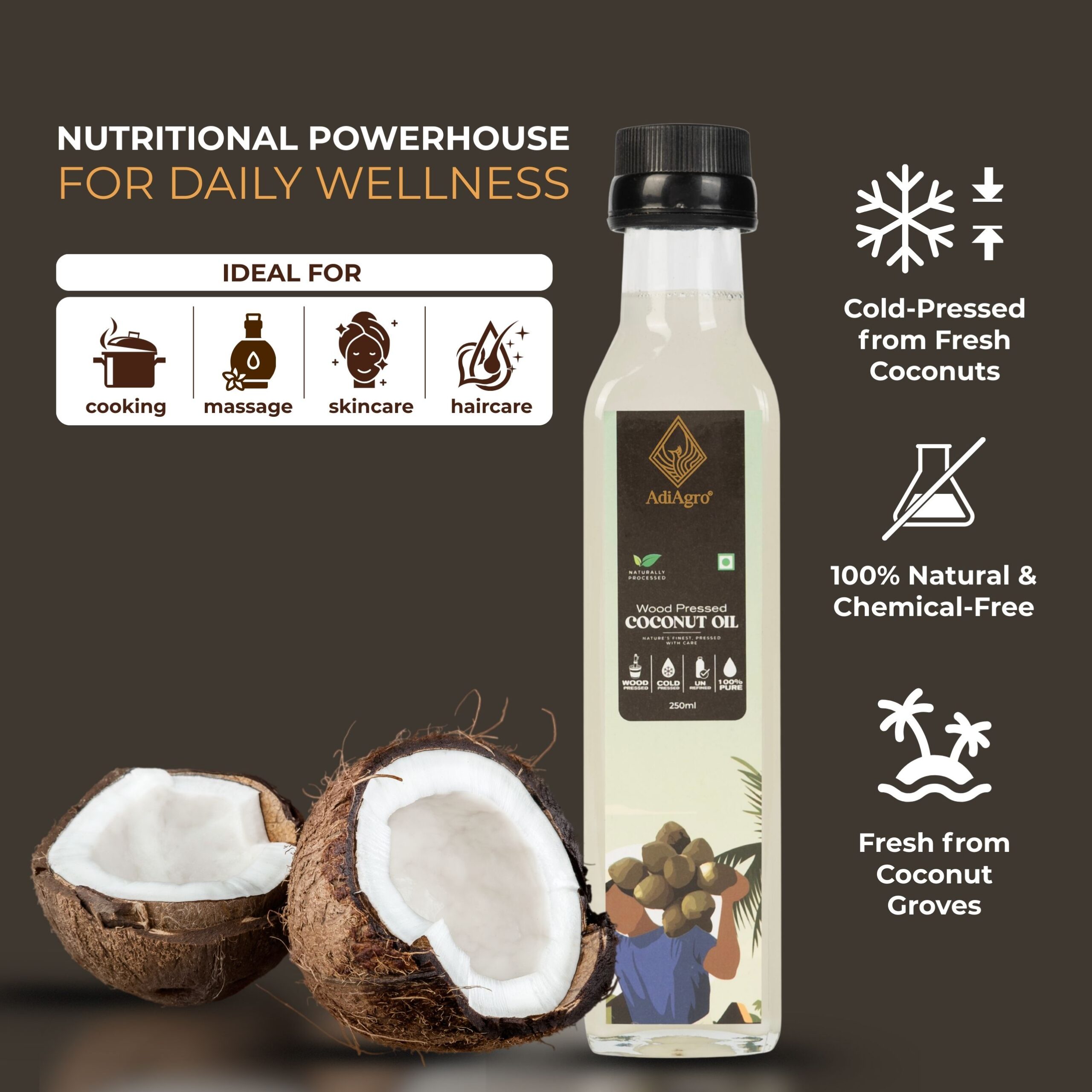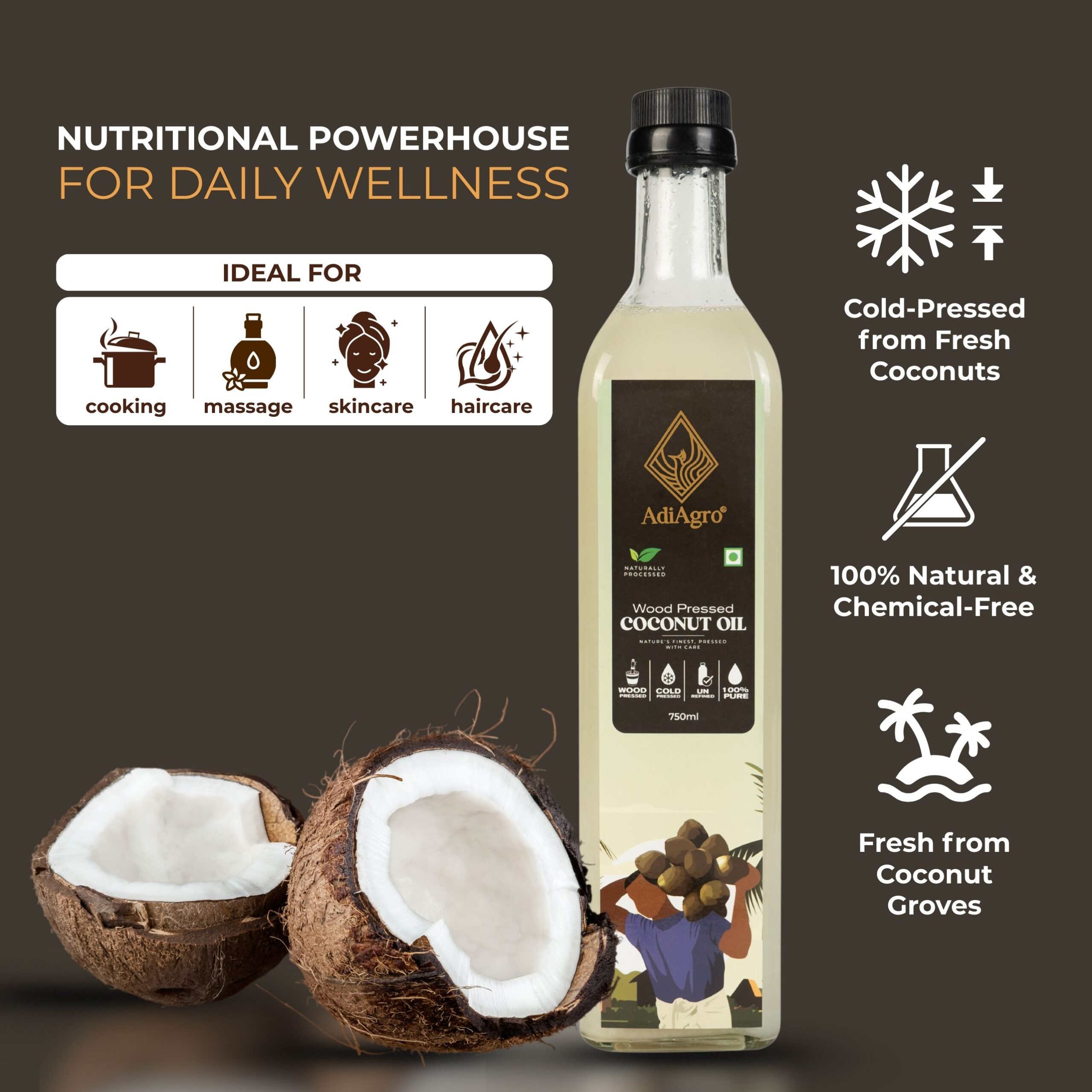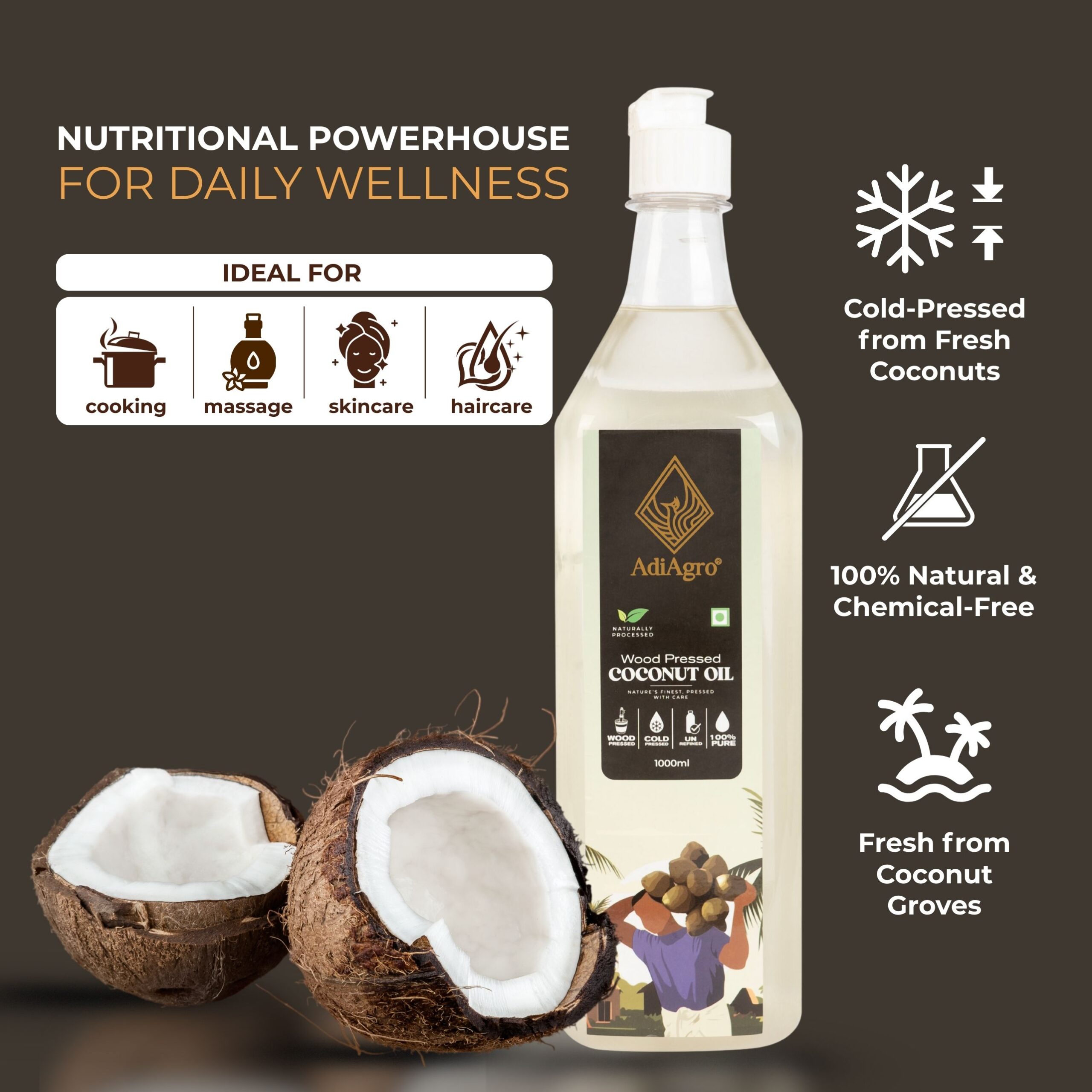 - Coconut Oil is known to have the most number of uses amongst any naturally extracted oil. Coconut Oil is used as skin moisturizers, cooking oil, haircare, skincare, and also used in medicine.